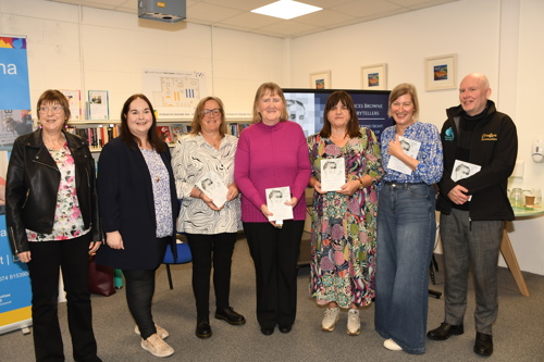 Writers and organisers celebrate the launch of Frances Browne Storytellers: Seeing Beyond Sight at Twin Towns Library, Stranorlar. Pictured L-R): Maura Meaney, Sinead Noonan, Petrina Finn, Margaret Kelly, Geraldine Conway, Isla McGuckin and Daithí Ramsay.