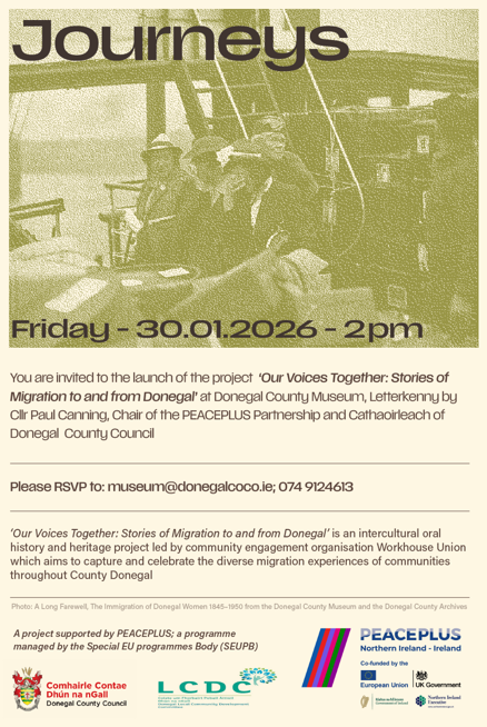 Donegal County Museum and Donegal Archives would like to invite you to the launch of ‘Our Voices Together: Stories of Migration to and from Donegal’ at Donegal County Museum, Letterkenny, on Friday, 30th January 2026, at 2 pm.