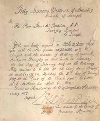 - Fr James McFadden, papers relating to a famous nineteenth century Donegal murder case; 1889.