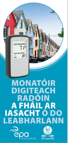 Is féidir monatóir digiteach a úsáid chun leibhéal radóin I do theach a thabhairt le fios. Má fhaigheann tú monatóir digiteach ó do Leabharlann gheobhaidh tú léargas tapa ar do leibhéil radóin.